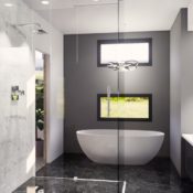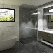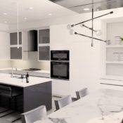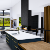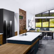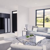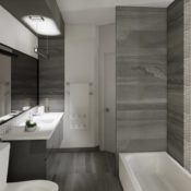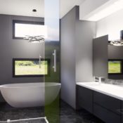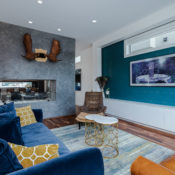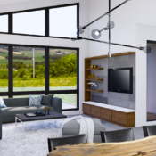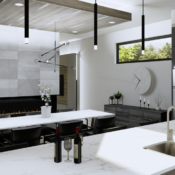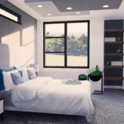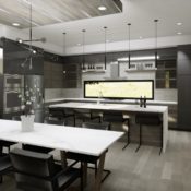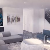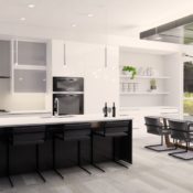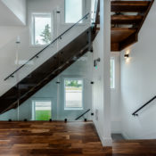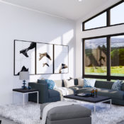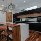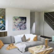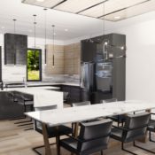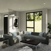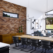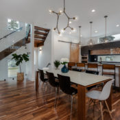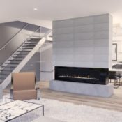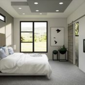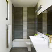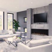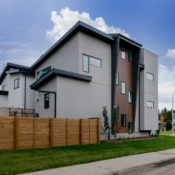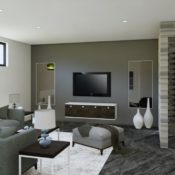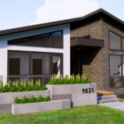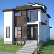 The Pacific’s exterior is a great mix of materials, two different stucco colours, wood grain lux siding and brick bringing a feeling of warmth in the modern elevation. Inside this home is 2468 + 942 (basement development) square feet with 3+1 bedrooms and 3.5+1 baths. The main floor is an open concept with a large living room at the front of the house and a large two-way fireplace wall creating a focal point and slight divide between the two spaces. The glass wall on the staircase adds an inspired addition to the room. You will be amazed by the counter space in the kitchen and the two large windows flanking the cook top providing an abundance of natural light. The island has an 8’ flush eating bar and the cabinets run the whole length of the kitchen. Walking through the barn door off the kitchen you will find a back entry way dreams are made of – with the ever popular drop zone and closet space for days you will be organized for any type of weather this City throws at you. There is even a built-in desk area to help keep your bills and such organized and out of the way. At the top of the stairs to the 2nd floor you will find another built-in desk and laundry room with cabinets and sink. The master bedroom has a large walk in closet and his and her entry through barn doors in the spa inspired ensuite. A large glass shower with stand-alone soaker tub will make you forgot your daily worries. The double vanities and washroom closet makes getting ready for work a breeze. The 2nd and 3rd bedrooms have their own ensuites giving everyone in the home privacy. The developed basement offers a large family room and another bedroom and full bath with more storage.